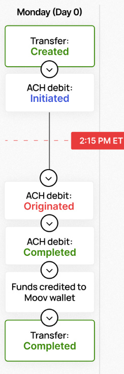 Much faster than any alternative pull (exception is RFP) with settlement delay of roughly 5 minutes. This number depends on the provider but with Moov.io, the delay is less than 5 minutes.